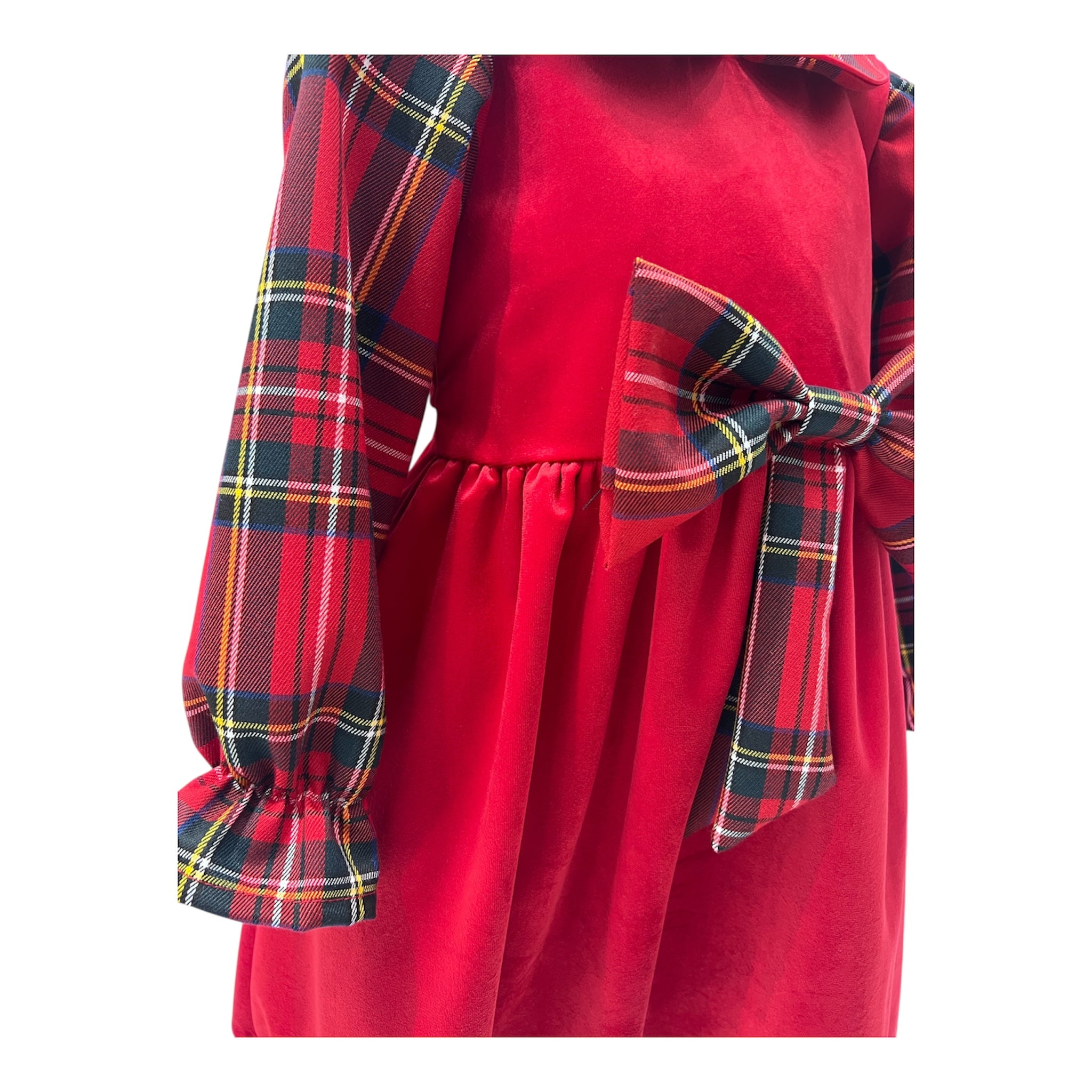 Questo delicato abitino combina il calore del velluto con l'eleganza del tartan natalizio, creando un capo perfetto per le festività. La lavorazione in velluto morbido garantisce comfort durante tutto il giorno, mentre il motivo tartan aggiunge un tocco di stile tradizionale e raffinato. Ideale per occasioni speciali, cene in famiglia e celebrazioni natalizie, questo vestito valorizza la bellezza naturale della bambina con una silhouette classica e senza tempo. Un investimento versatile nel guardaroba festivo.