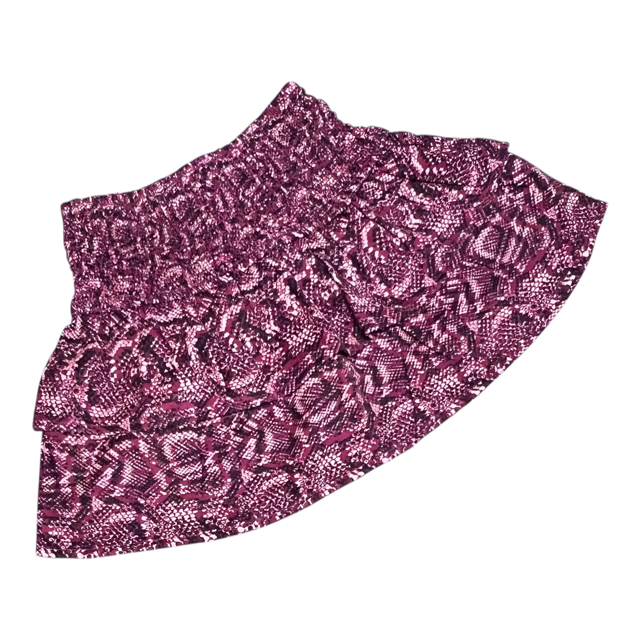 Gonna in tessuto elasticizzato con balze decorative, ideale per le bambine che amano uno stile dinamico e versatile. Il motivo pitone conferisce un tocco di personalità, mentre la cintura elastica garantisce comfort durante il gioco e le attività quotidiane. Perfetta da abbinare a magliette basic o body colorati per creare look originali e moderni.