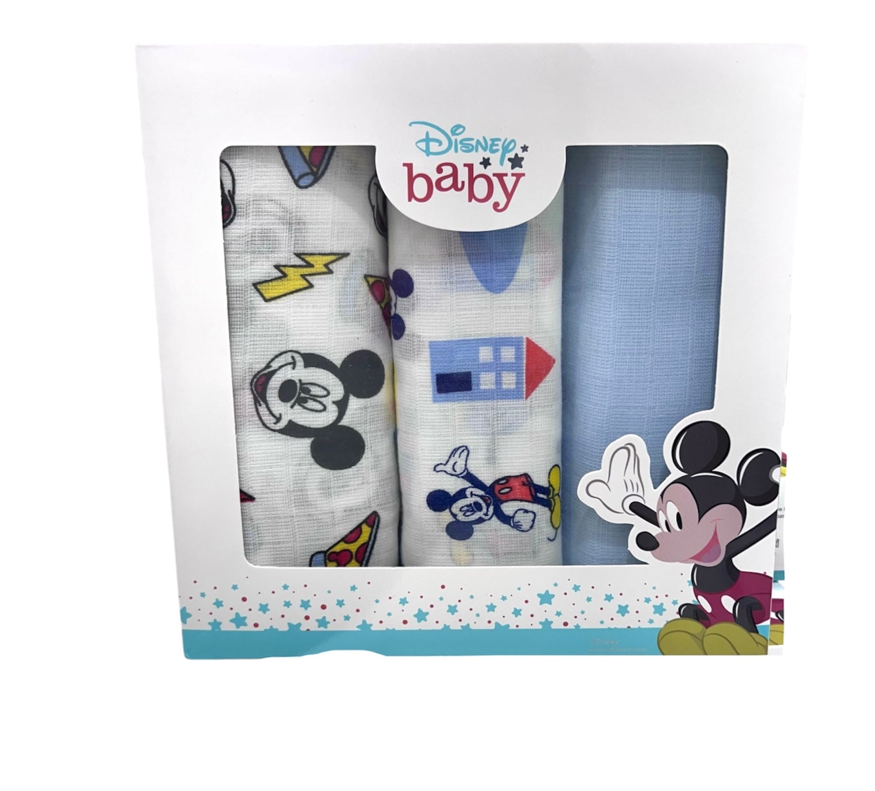 Tre mussole Disney Mickey Mouse realizzate in garza colorata, perfette per il cambio e la pulizia delicata del neonato. Il design con il celebre personaggio Mickey rende ogni momento della routine quotidiana più divertente e allegro. La garza morbida e traspirante garantisce comfort e delicatezza sulla pelle sensibile del bambino. Ideali da tenere sempre a portata di mano in camera, in bagno o in borsa durante gli spostamenti.