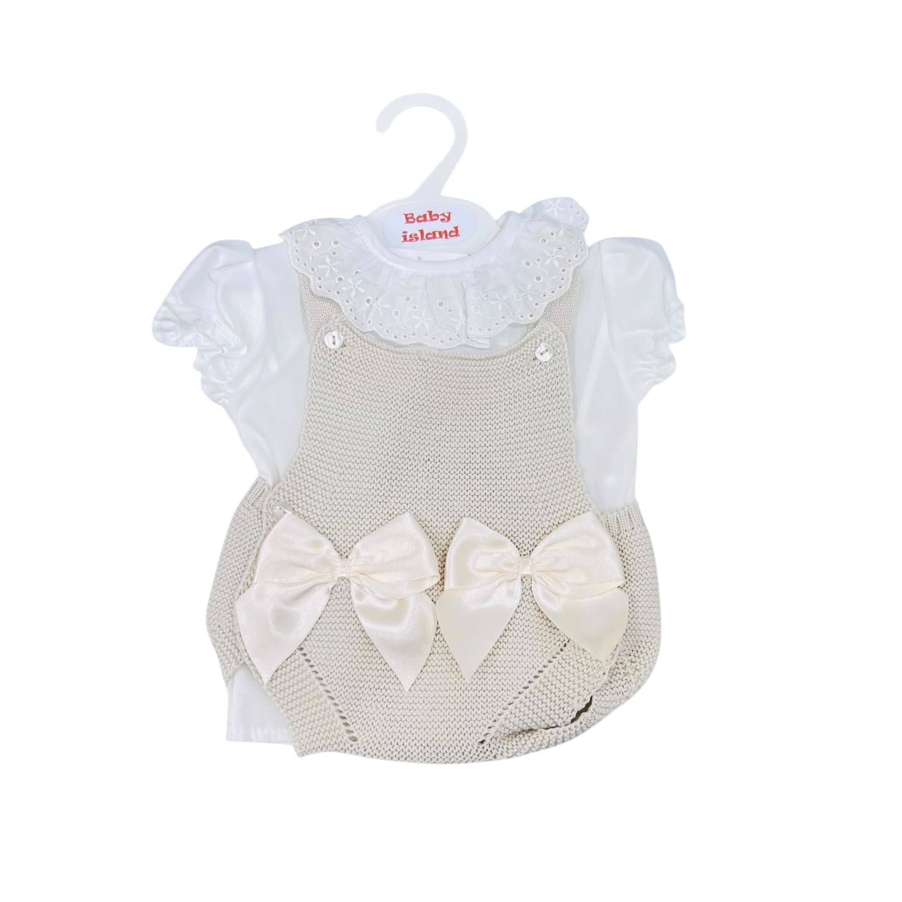 Adorabile pagliaccetto in cotone per neonati e bambini piccoli, perfetto per le occasioni speciali. Il design caratteristico presenta fiocchi in filo che aggiungono un tocco elegante e giocoso, abbinato a una camicia coordinata per un look completo e raffinato.