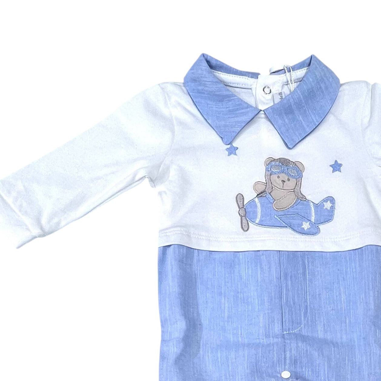 Tutina in cotone 100% per neonato maschio, parte essenziale del corredino. Realizzata con fibre naturali morbide e traspiranti, garantisce comfort durante tutto il giorno. Il tessuto di qualità superiore è delicato sulla pelle sensibile del bambino e facile da lavare. Perfetta per le prime settimane di vita, combina praticità e eleganza con una vestibilità ottimale. Ideale per creare un guardaroba neonatale completo e versatile.