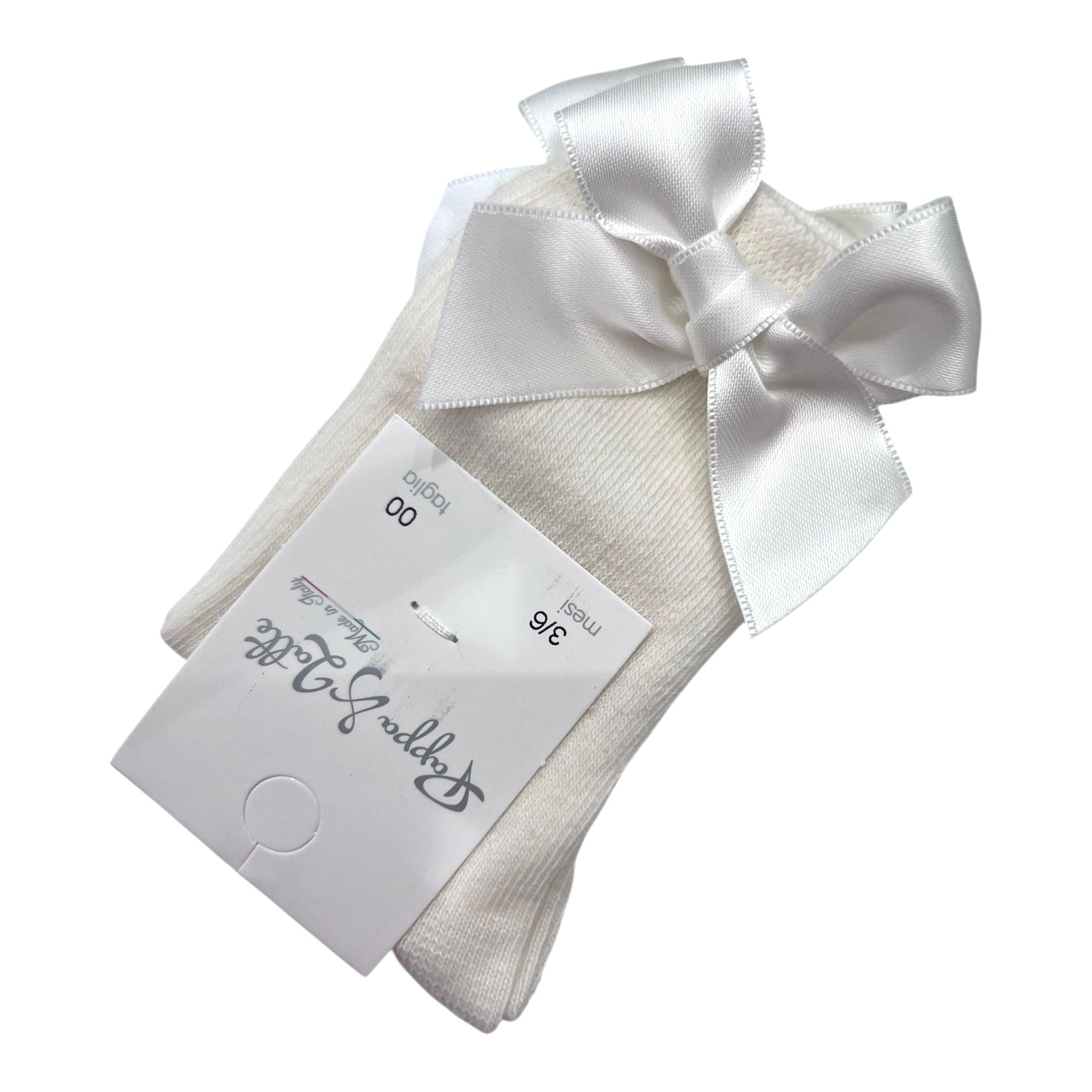 Pappa e Latte Calzino lungo in cotone caldo e morbido, arricchito da un delicato dettaglio fiocco che aggiunge un tocco di eleganza. La fibra naturale garantisce traspirabilità e comfort durante tutto il giorno, mantenendo i piedini del bambino al caldo senza causare irritazioni. La lunghezza estesa offre copertura completa e protezione, ideale per le stagioni più fredde. Realizzato con cuciture precise e materiali di qualità, questo calzino resiste ai lavaggi ripetuti conservando forma e morbidezza. Perfetto per chi desidera combinare funzionalità e stile raffinato nell'abbigliamento dei più piccoli.