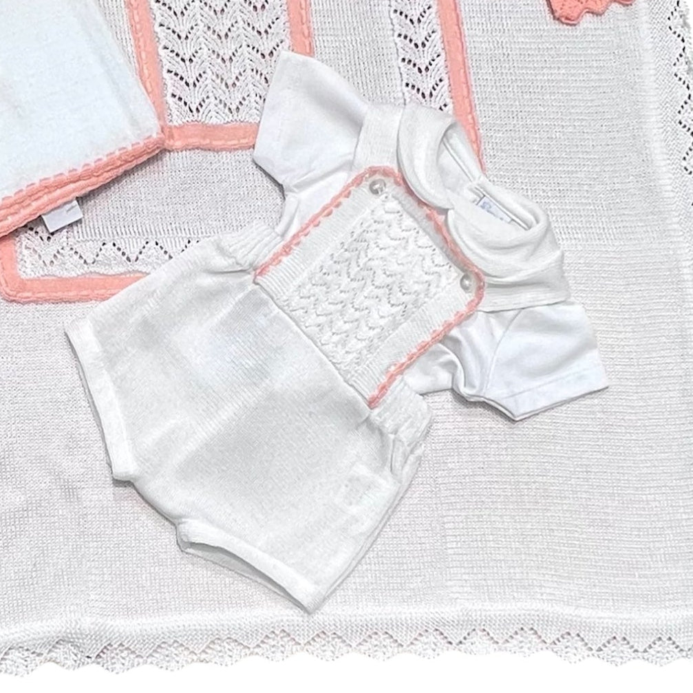 Scialle delicato in filo di cotone, perfetto per proteggere il neonato durante le giornate più fresche un capo che non può mancare.
